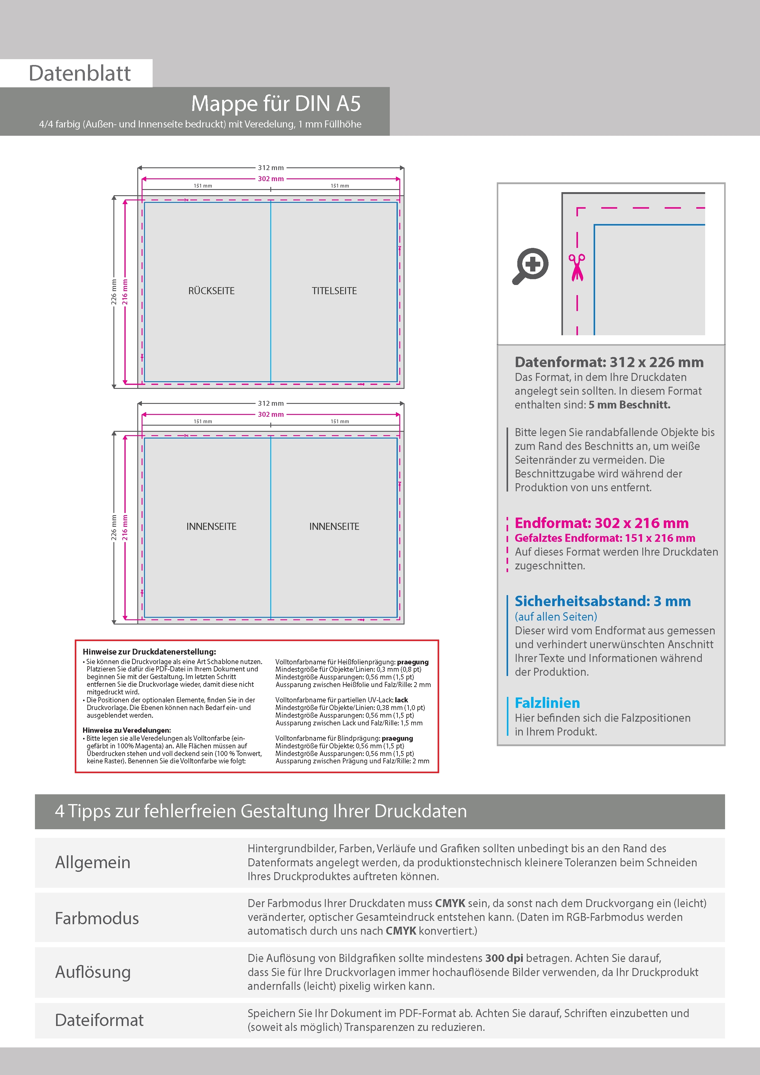Mappe für DIN A5, 4/4 farbig (Außen- und Innenseite bedruckt), mit Softfeel-Folie kaschiert